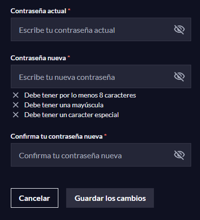 - Ingresa tu nueva contraseña. Por razones de seguridad, te recomendamos que tu contraseña: