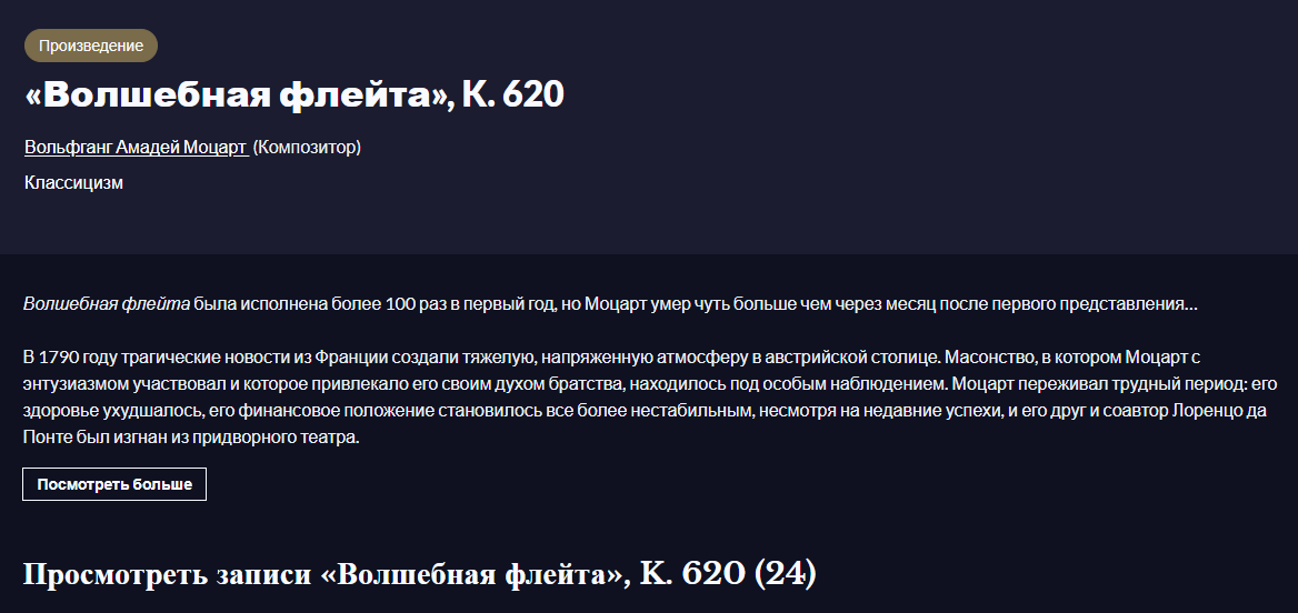 Нажмите на эскиз музыкального произведения, и вы попадете на страницу со списком всех интерпретаций