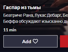- на веб-сайте medici.tv (настольный компьютер/ноутбук): наведите указатель мыши на фильм, появится кнопка Добавить